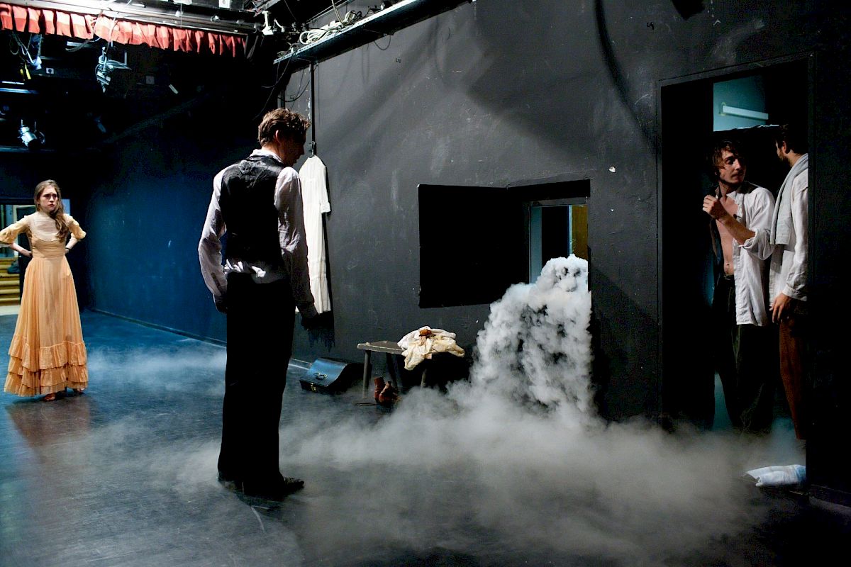 Tri sestre in Utva sta produkciji obeh semestrov. Posvetili  smo se analizi dramskega teksta v prostoru, pobližje spoznavali like, se spopadali z igralskimi orodji, delovanjem na partnerja, poudarili smo raziskovanje prostora, ki nas je pripeljalo do različnih atmosfer in včasih kar intuitivnih rešitev. Stavili smo na mamljiv, nalezljiv ''gledališki parfum'' – A T M O S F E R O, ki dogodke na odru ali podpre, včasih pa jih zna tudi povoziti, izničiti … prav tako kot v življenju. Iskali smo načine, kako eksponirati, zaostriti dejanja, kako splesti celoto, peljati lok zgodbe, predvsem pa smo v tekst pričeli vlivati življenje Rusov 19. in 20. st. Odkrivali smo magijo gledališča in kot pravi Nina Zarečna: