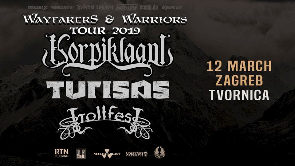 »Wayfarers & Warriors Tour 2019« dolazi u Zagreb 12.3.2019. Prvaci pagan metal scene KORPIKLAANI, TURISAS i TROLLFEST obećavaju nezaboravnu feštu za sve fanove iz Hrvatske i okoline.